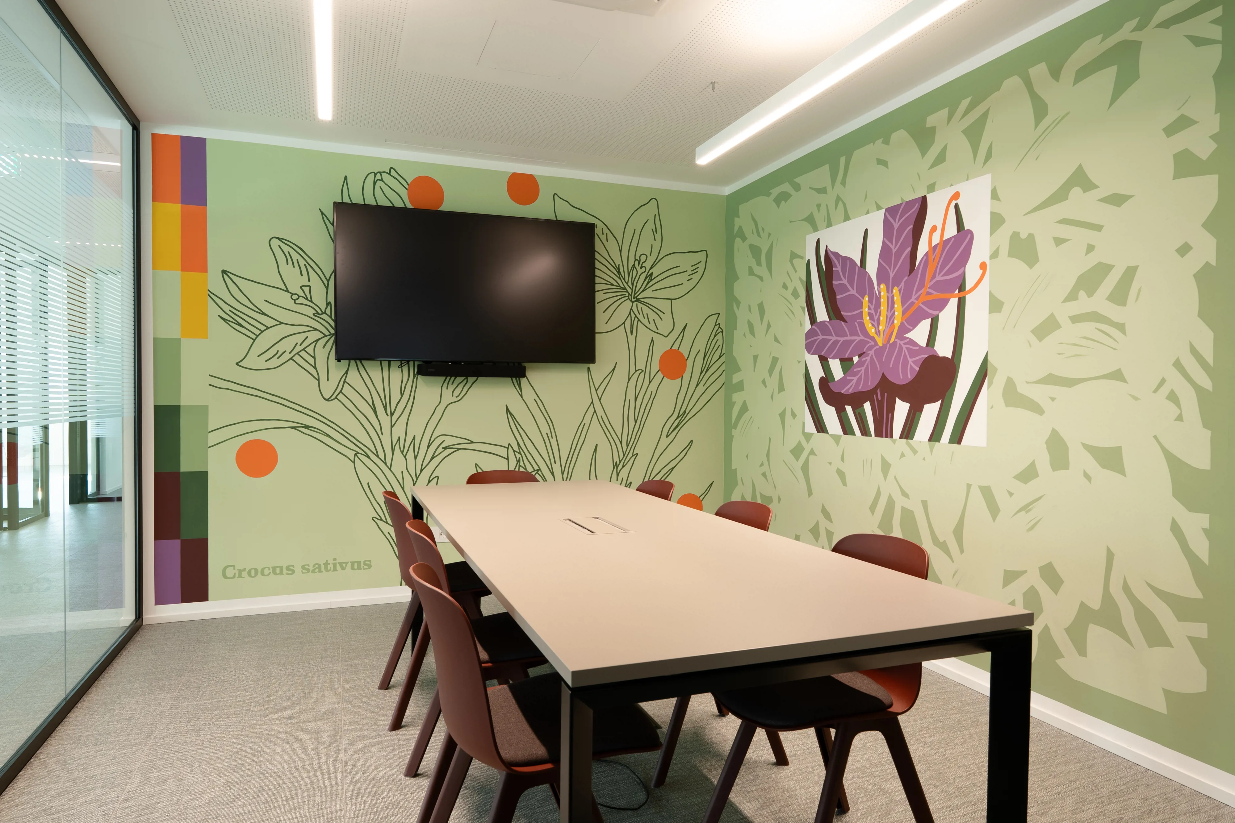 L’ispirazione nasce dalle illustrazioni che abitano le sale riunioni del nuovo Risto3 hub: Zafferano, Anice, Timo, Noce, Ulivo e Cedro, elementi naturali reinterpretati dall’artista Luogo Comune. Ogni nome richiama un elemento nobile della natura, evocativo e ricco di significato: radici che custodiscono memoria, frutti che parlano di identità, profumi e colori che evocano tradizione e innovazione. Sono immagini semplici nella forma ma dense di significato, capaci di rappresentare l’essenza di Risto3 hub: un luogo che cresce e guarda avanti.