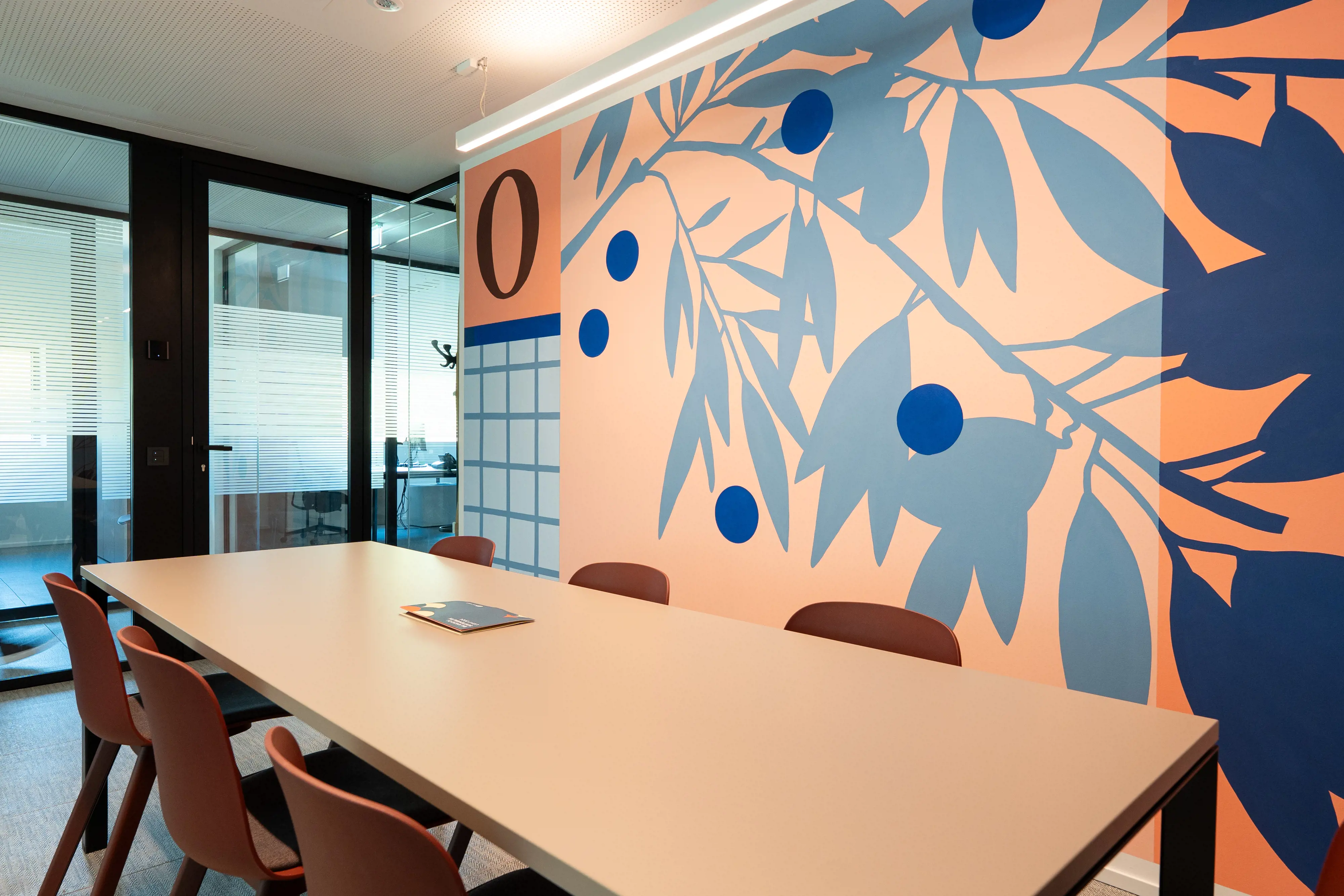 A rendere l’ambiente ancora più accogliente e identitario contribuiscono le illustrazioni di Luogo Comune, che decorano le sale riunioni e raccontano in modo visivo i valori e la storia di Risto3.